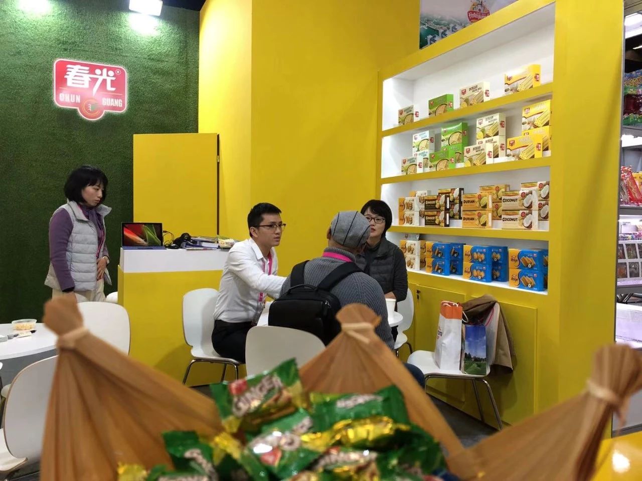 在本屆展會上,最炙手可熱的“明星”當屬在年前上市的小椰子棒棒糖,“這個小椰子棒棒糖很出名,我在湖南衛視跨年演唱會上看見過,過年有買一些送給我們這兒的中國朋友,他們都很喜歡。”來自德國的嘉賓保羅先生一見如故地說道。“這款小椰子棒棒糖一共有番石榴味、可可味、原味三種口味......”現場工作人員向嘉賓和采購商們熱情地介紹到。春光小椰子棒棒糖曾在湖南衛視跨年演唱會以及春節聯歡晚會上被熱推,實現了消費者口碑和銷量雙贏。這一次首度亮相國際舞臺,春光小椰子棒棒糖憑借環保紙棒包裝、趣味圖案與獨具特色的海南椰味贏得現場一片好評。