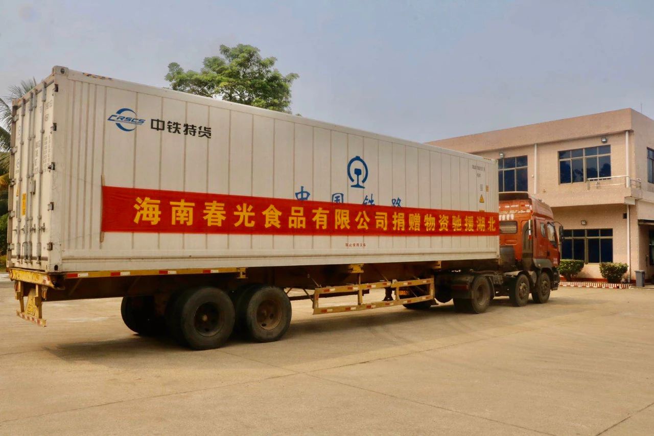 3月30日早上8點,滿載春光食品的物資運送貨車從海南春光食品工廠出發(fā),千里馳援湖北。