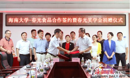 此外,在簽約儀式上,春光食品集團還捐贈設立了“海南大學教育基金會春光獎學金”,用于資助海南大學食品學院品學兼優的在校學生,致力于食品產業人才培養、鼓勵學生深入學習科學研究,提升學生創新創業能力,推動了海南的教育事業進一步發展。